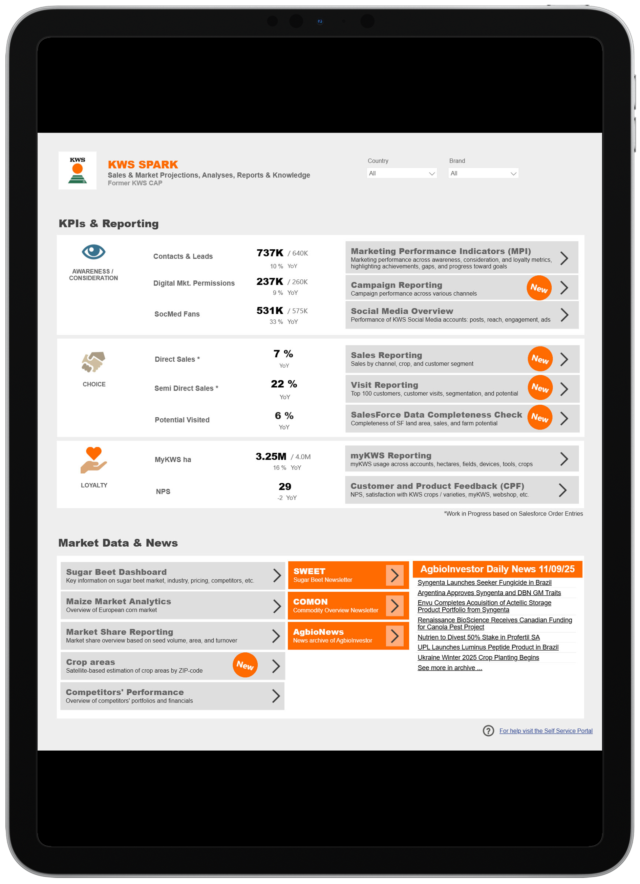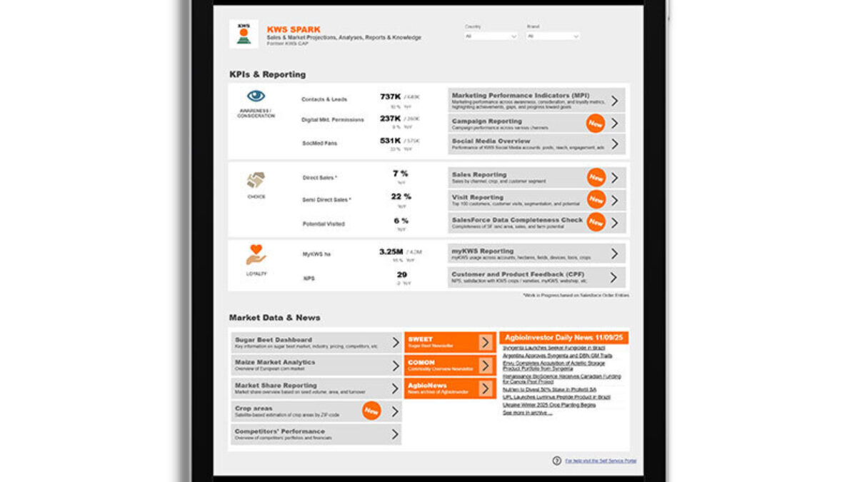 “Until now, gathering together sales, marketing or digital farming data from different locations and data sources could be very time-consuming,” says Artur Dohel from the Commercial Analytics team of GMC. Now, SPARK (short for Sales & Market Projections, Analyses, Reports & Knowledge) will make that a lot easier as a single source of truth within the new cross-crop customer centric setup. “SPARK brings together sales and marketing analytics across all crops. This enables KWS colleagues around the world to take better decisions every day,” adds Mario Klass, Head of ExH Customer Management & Sales Effectiveness.